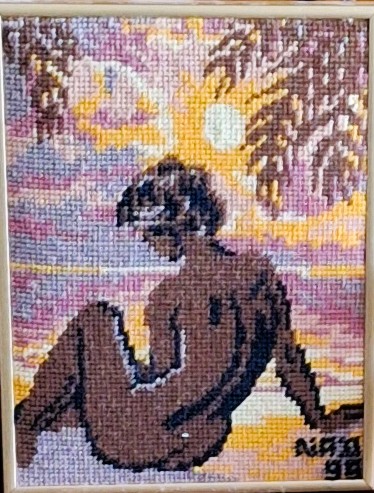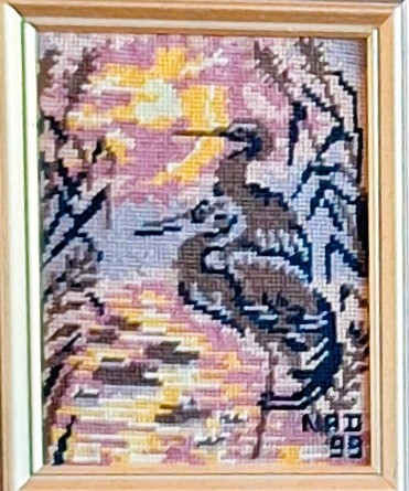 Mike à été fait avec ca peinture pour le fond et moi pour la broderie dessus. il n'était pas simplement un ami Gilbert était un grand peintre, tous ces encadrements ont été fait par lui, merci à toi qui es partit trop vite 1944-2020