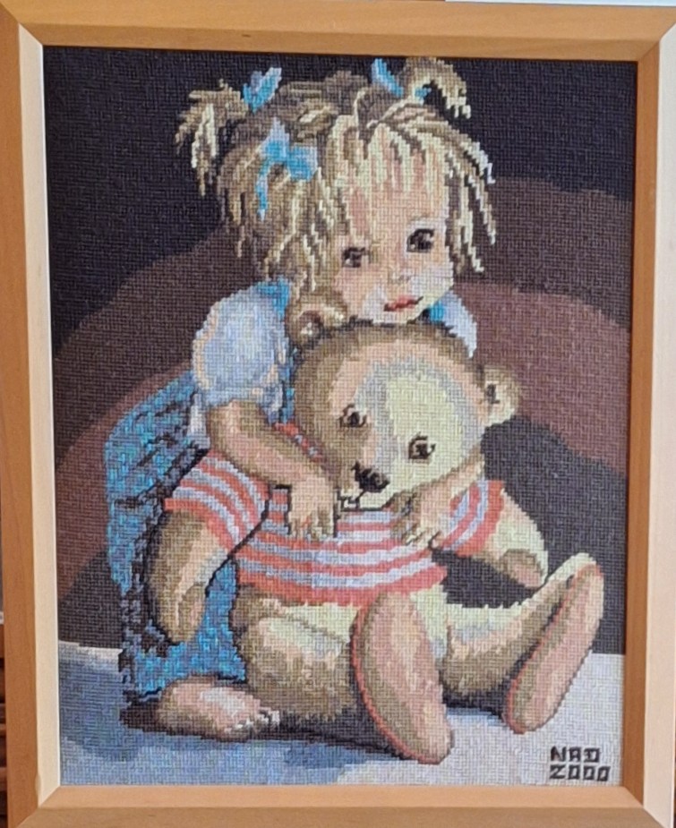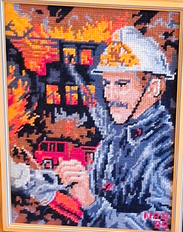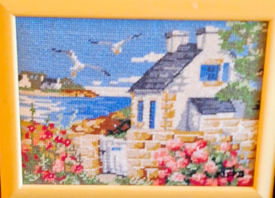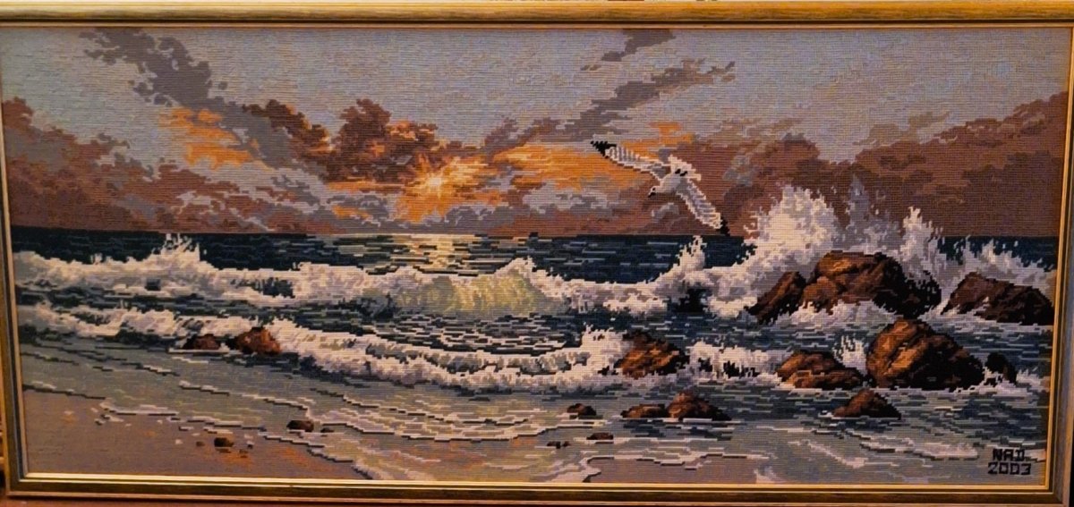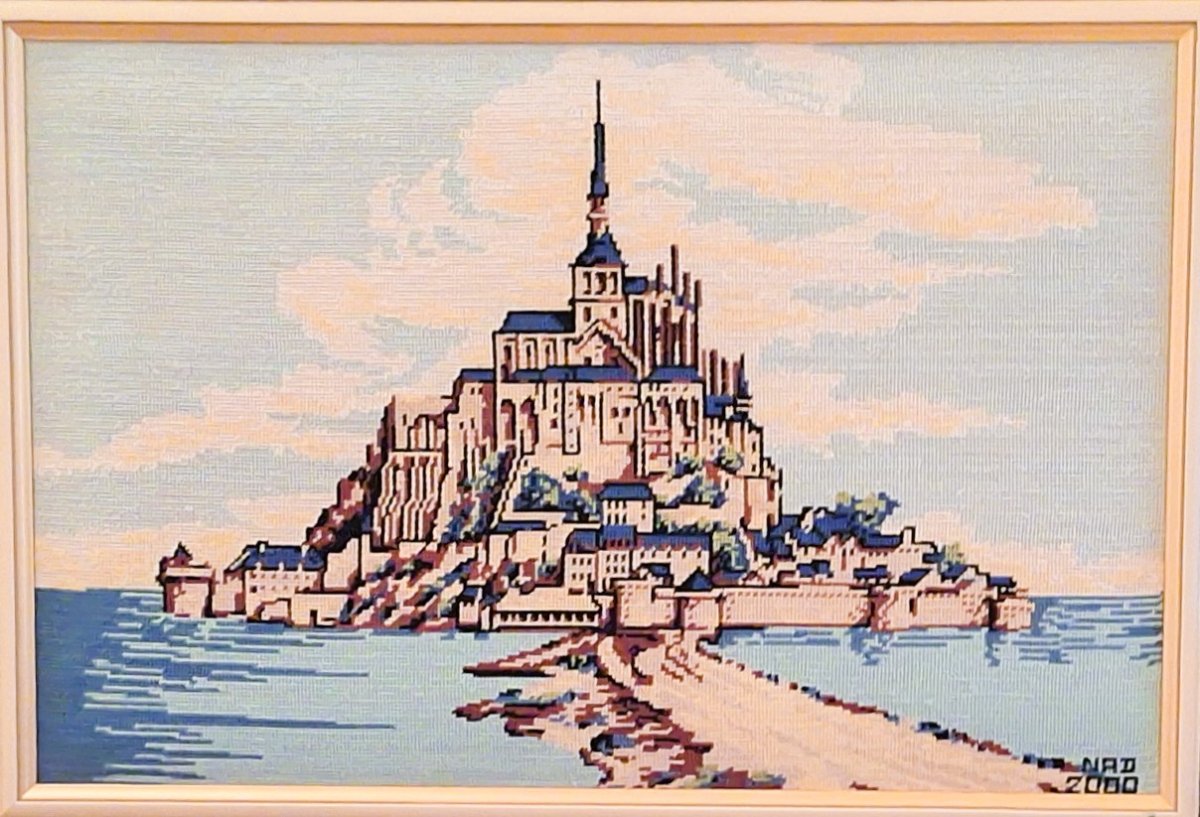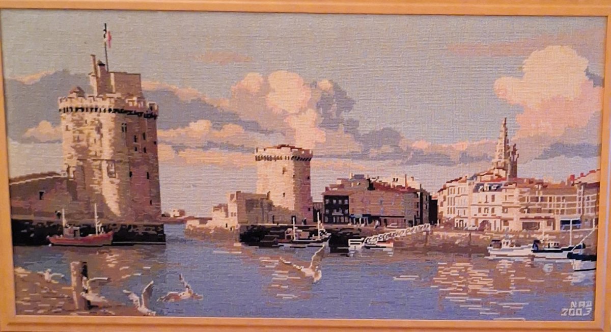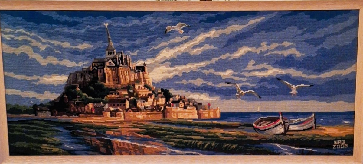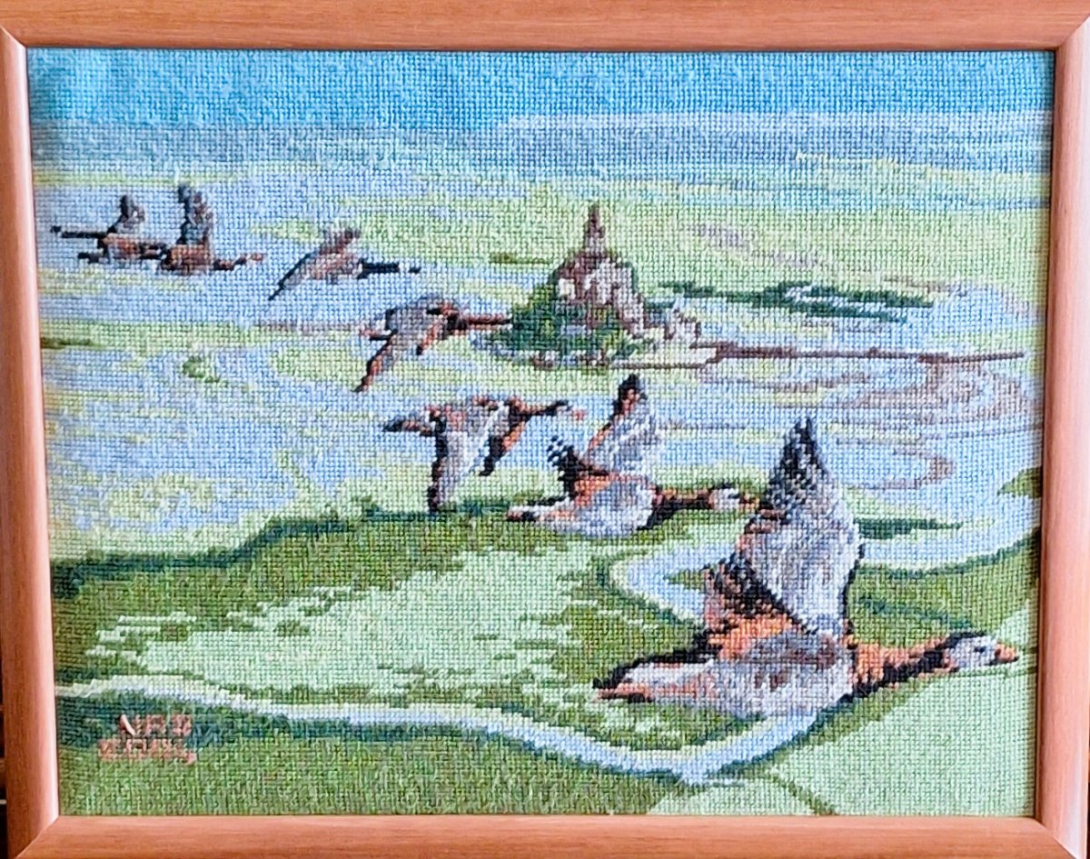 Mike à été fait avec ca peinture pour le fond et moi pour la broderie dessus. il n'était pas simplement un ami Gilbert était un grand peintre, tous ces encadrements ont été fait par lui, merci à toi qui es partit trop vite 1944-2020