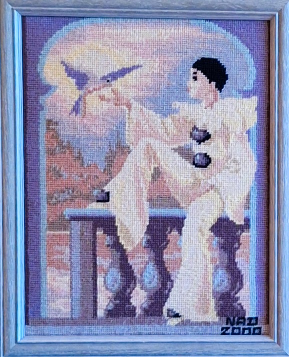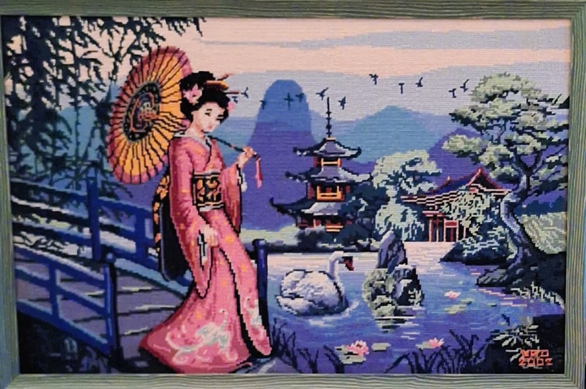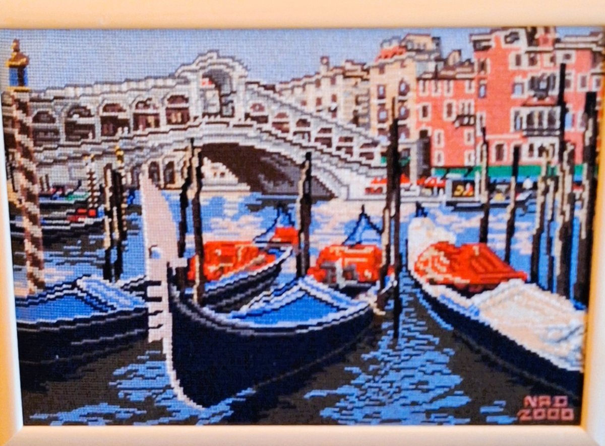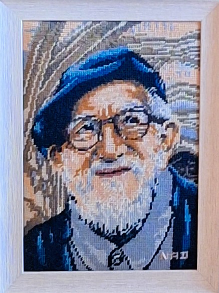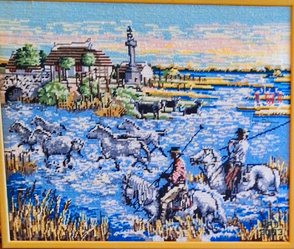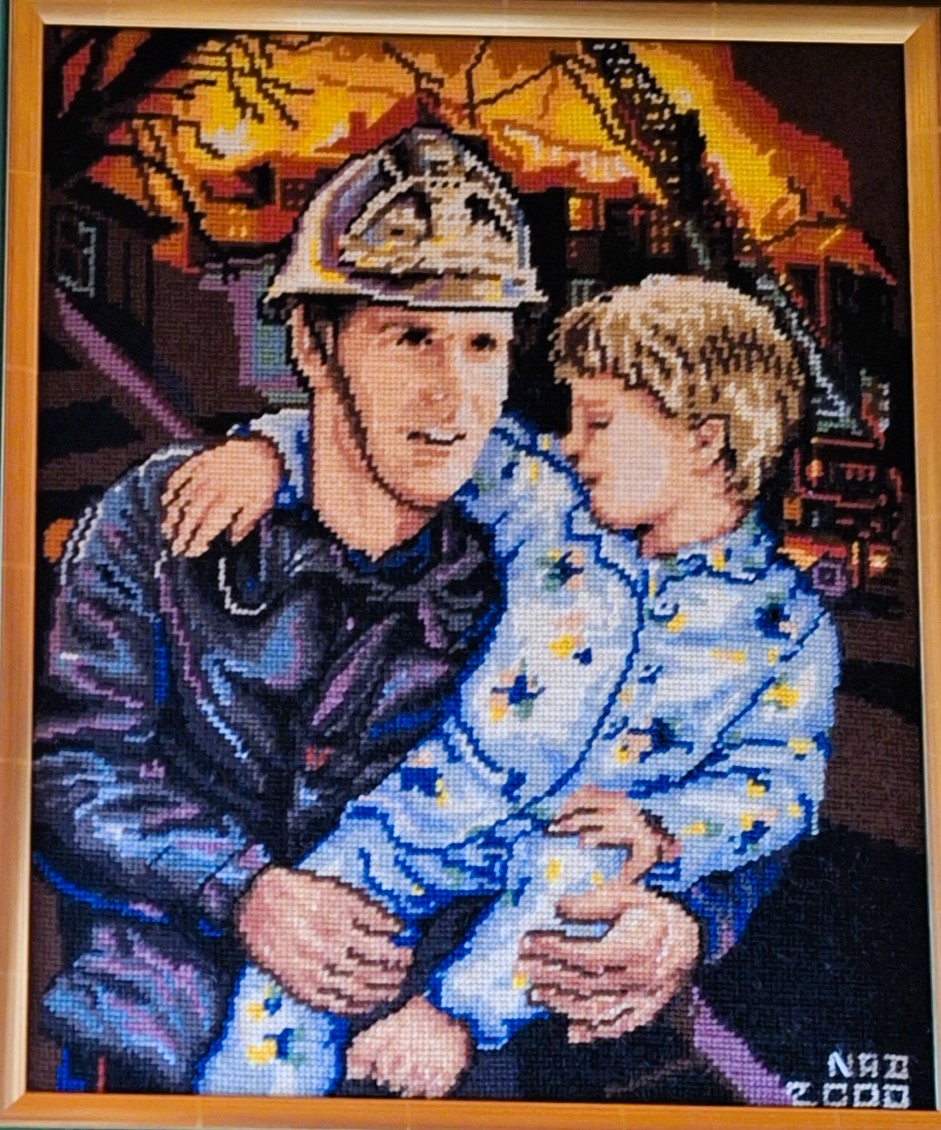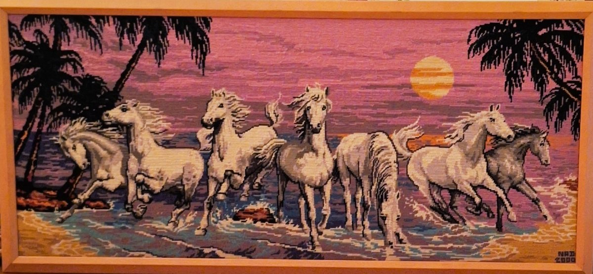 Mike à été fait avec ca peinture pour le fond et moi pour la broderie dessus. il n'était pas simplement un ami Gilbert était un grand peintre, tous ces encadrements ont été fait par lui, merci à toi qui es partit trop vite 1944-2020