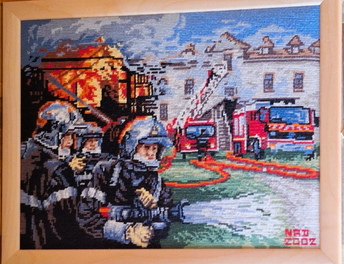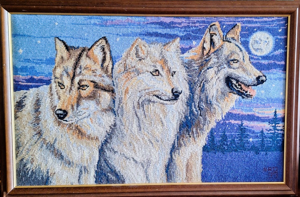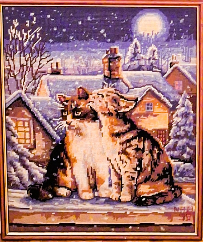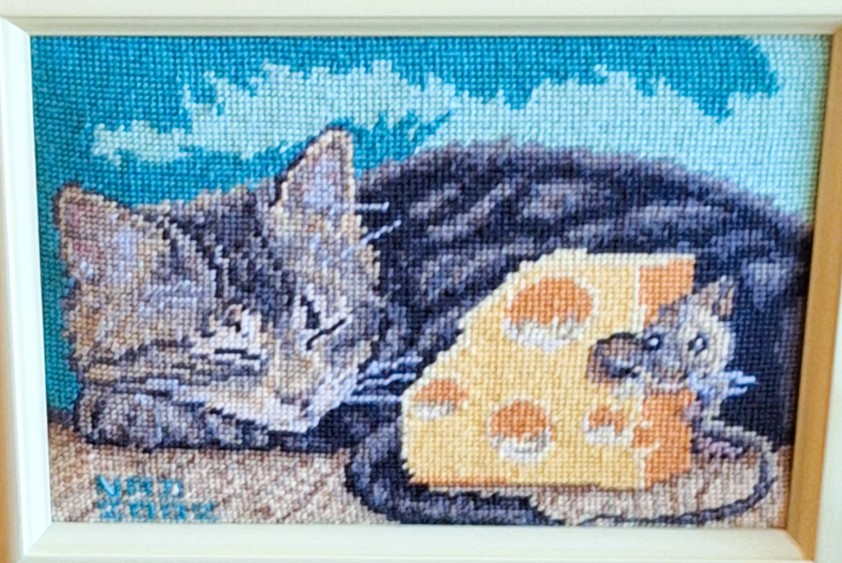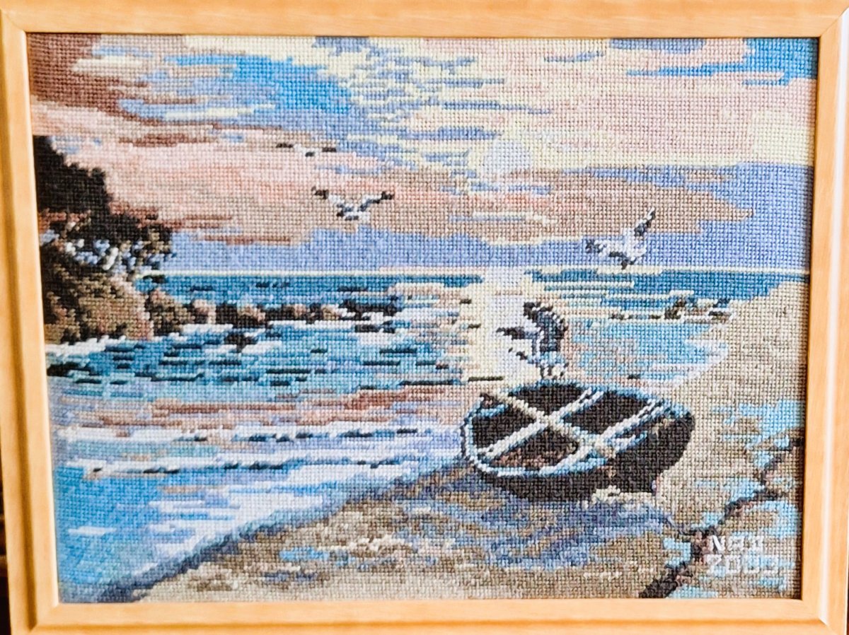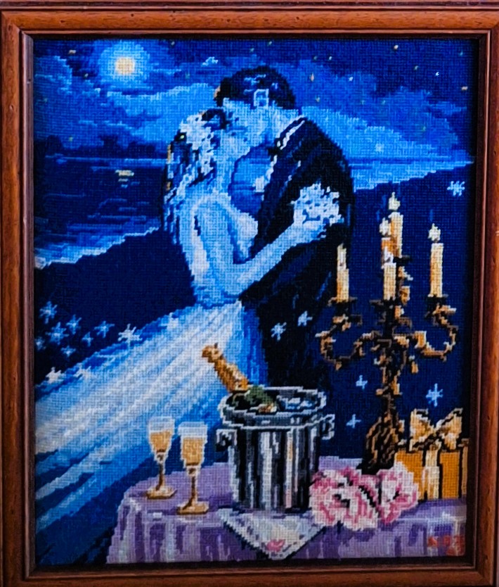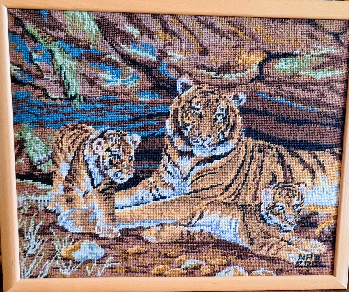 Mike à été fait avec ca peinture pour le fond et moi pour la broderie dessus. il n'était pas simplement un ami Gilbert était un grand peintre, tous ces encadrements ont été fait par lui, merci à toi qui es partit trop vite 1944-2020