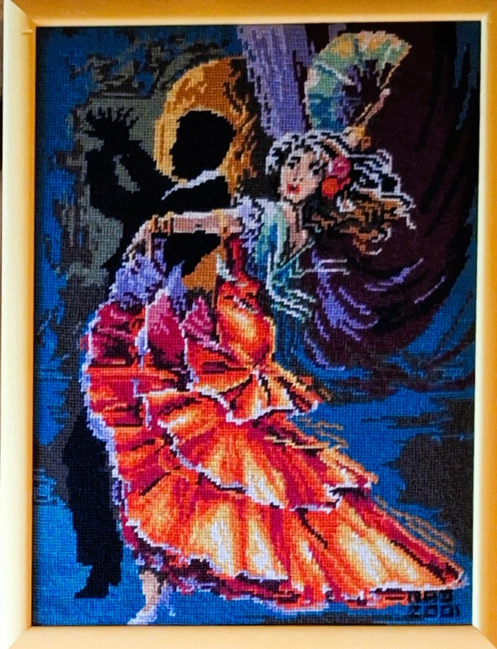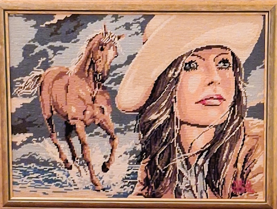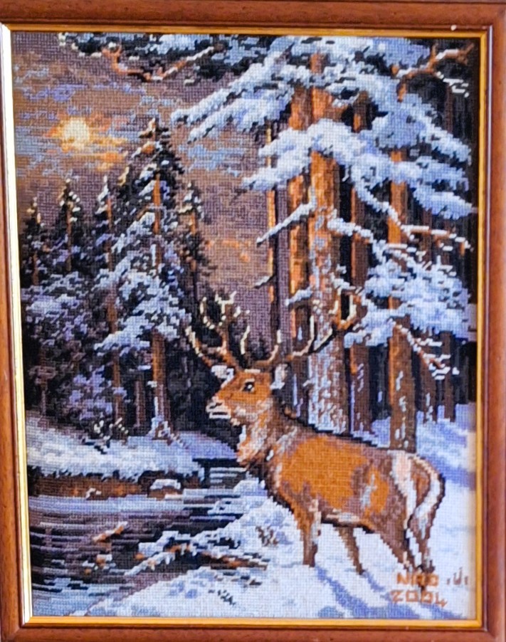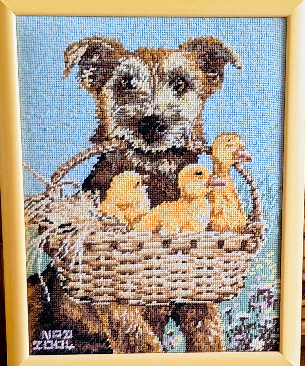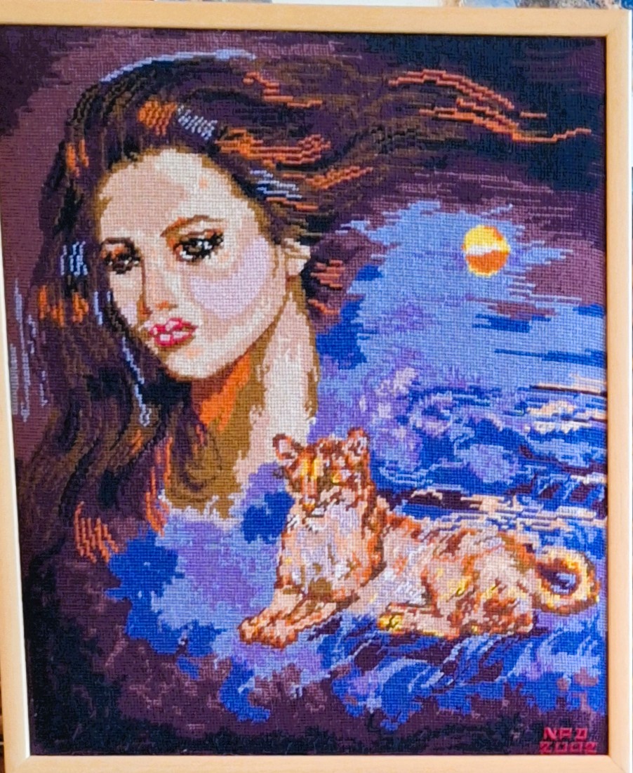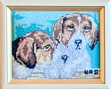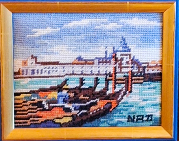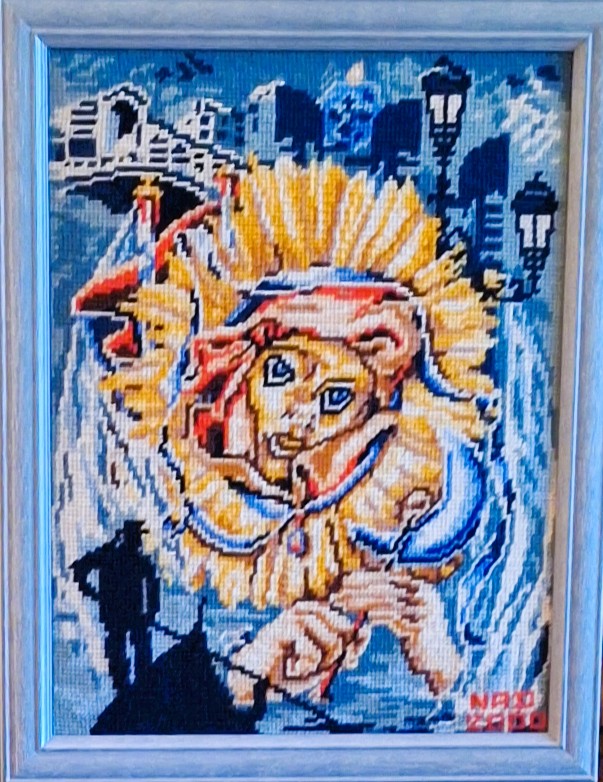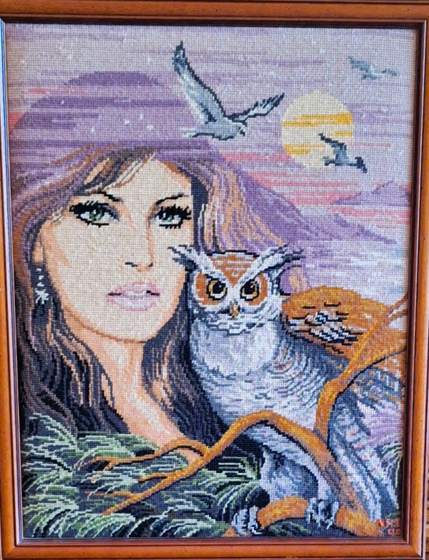 Mike à été fait avec ca peinture pour le fond et moi pour la broderie dessus. il n'était pas simplement un ami Gilbert était un grand peintre, tous ces encadrements ont été fait par lui, merci à toi qui es partit trop vite 1944-2020