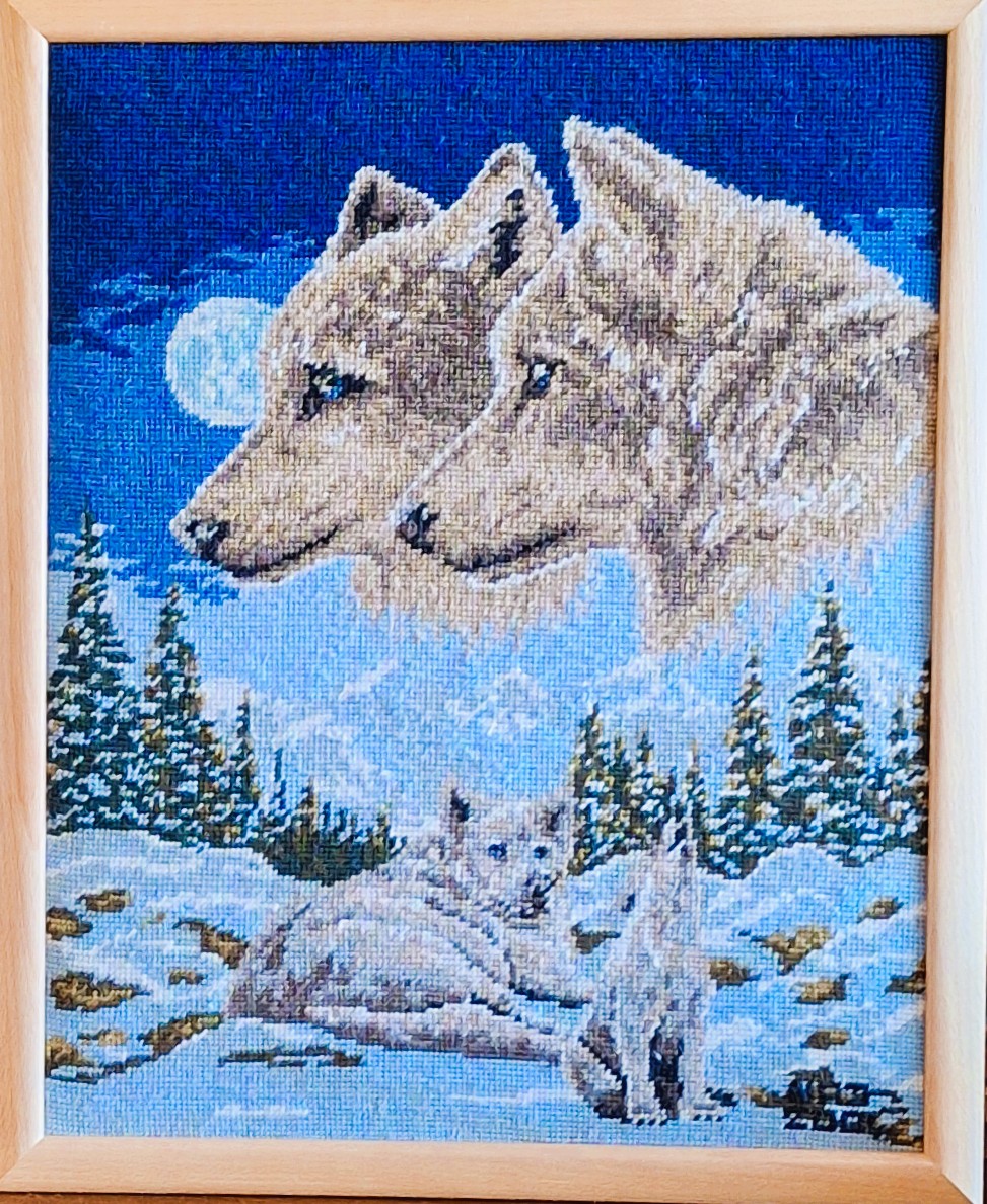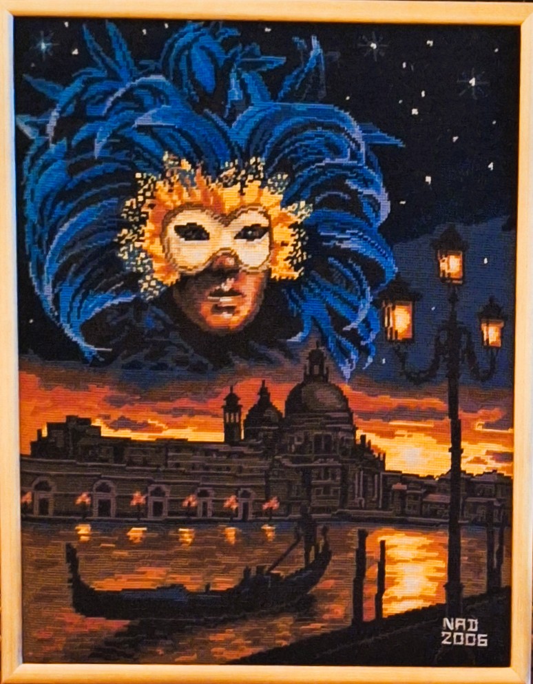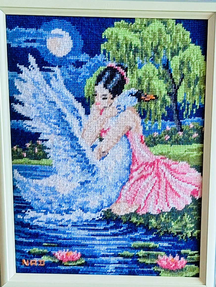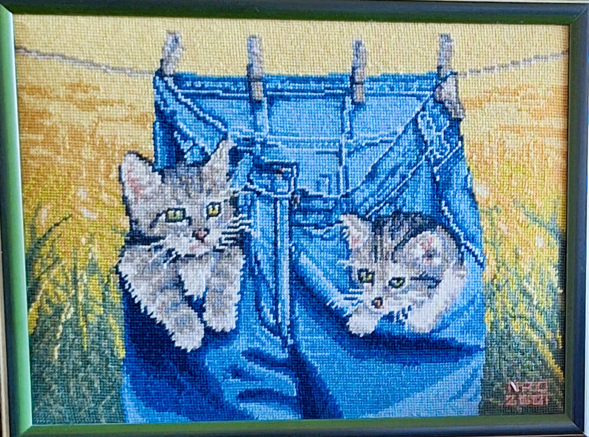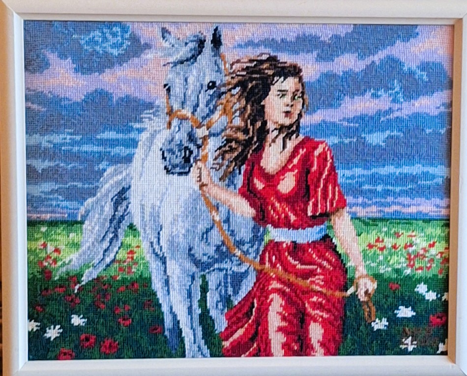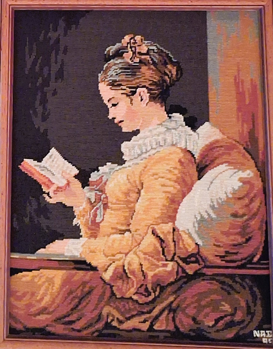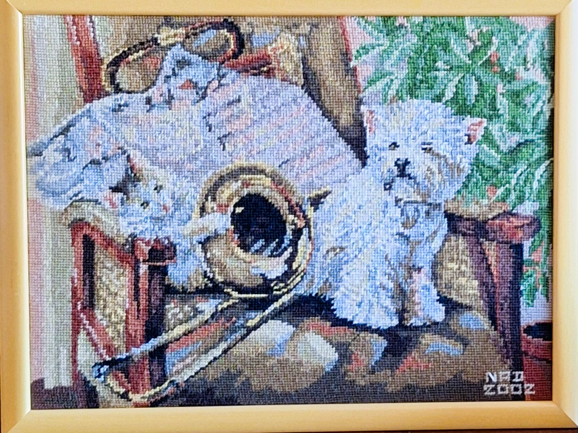Mike à été fait avec ca peinture pour le fond et moi pour la broderie dessus. il n'était pas simplement un ami Gilbert était un grand peintre, tous ces encadrements ont été fait par lui, merci à toi qui es partit trop vite 1944-2020