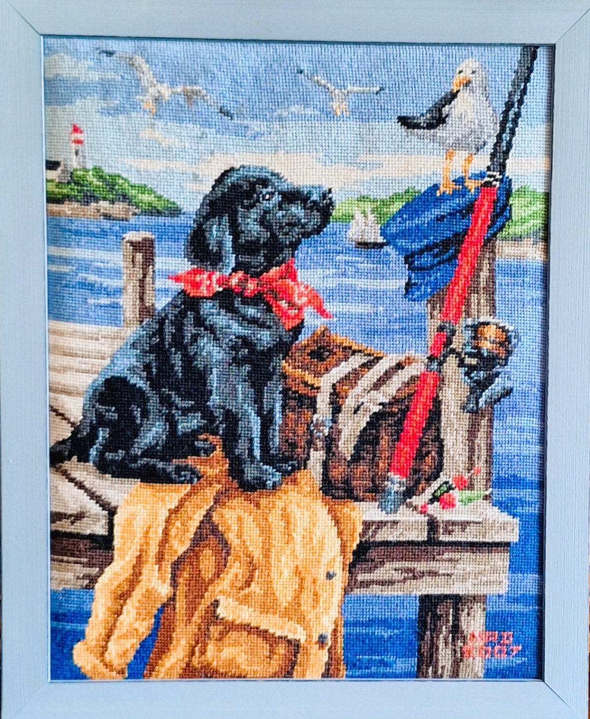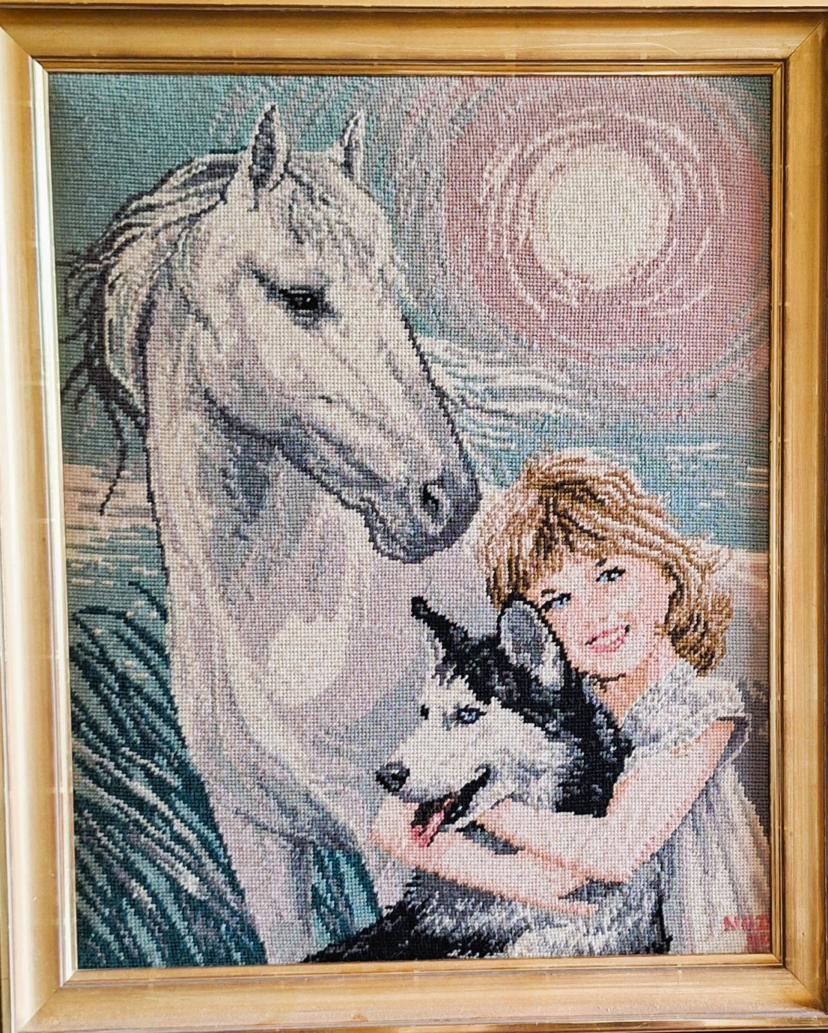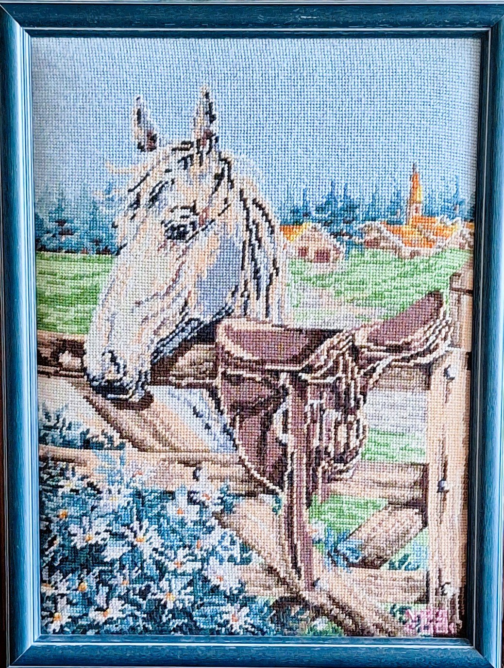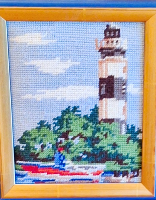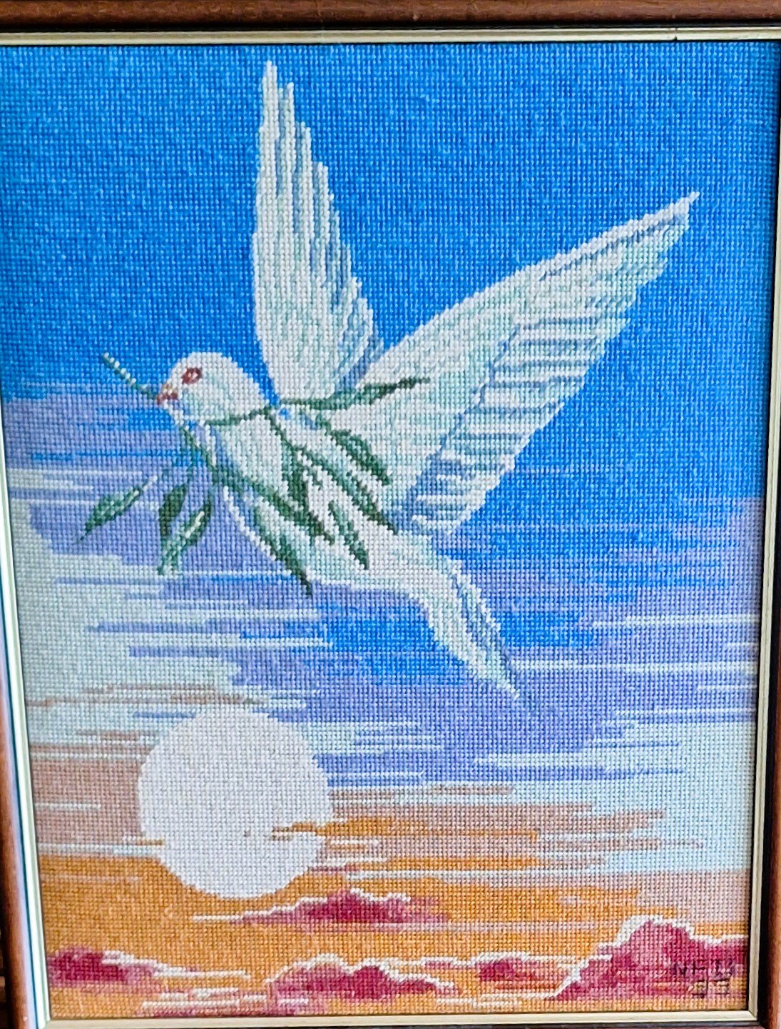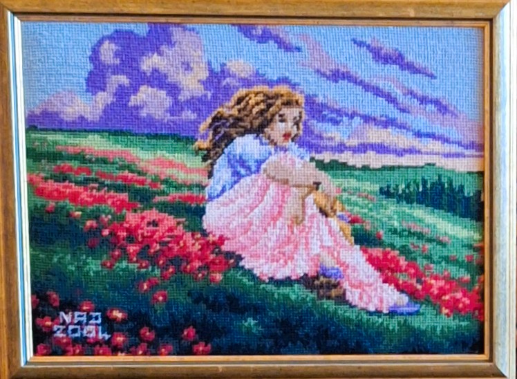 Mike à été fait avec ca peinture pour le fond et moi pour la broderie dessus. il n'était pas simplement un ami Gilbert était un grand peintre, tous ces encadrements ont été fait par lui, merci à toi qui es partit trop vite 1944-2020