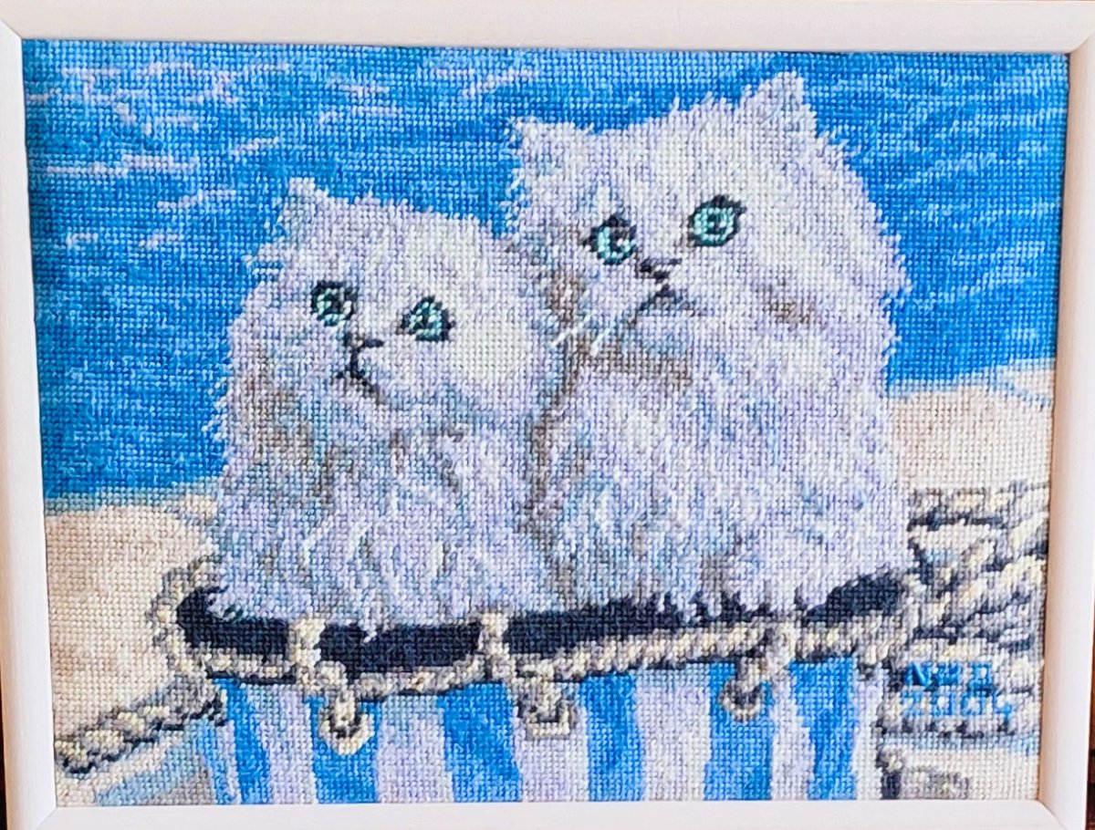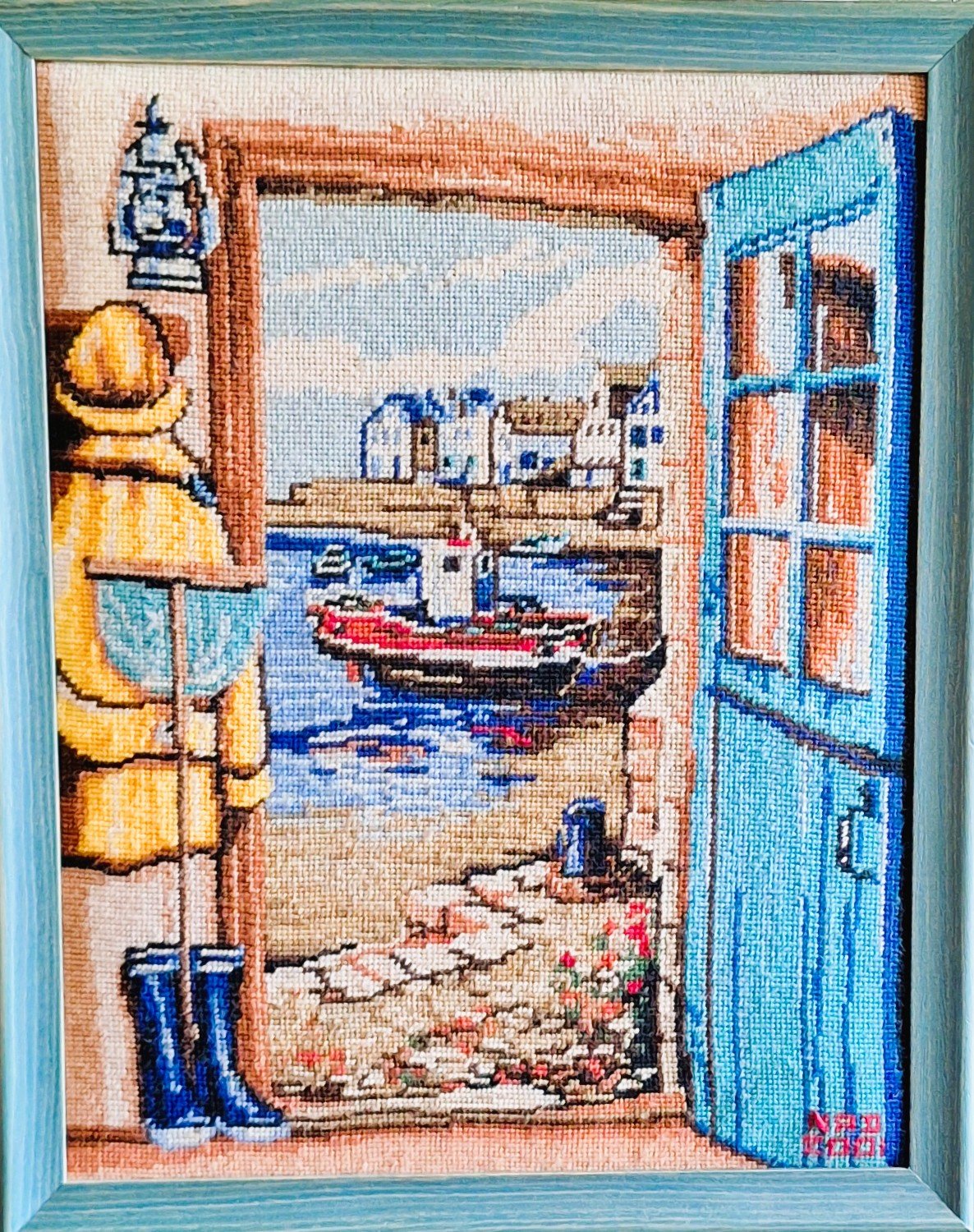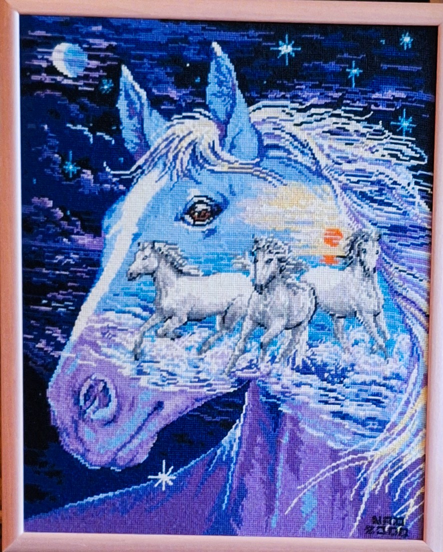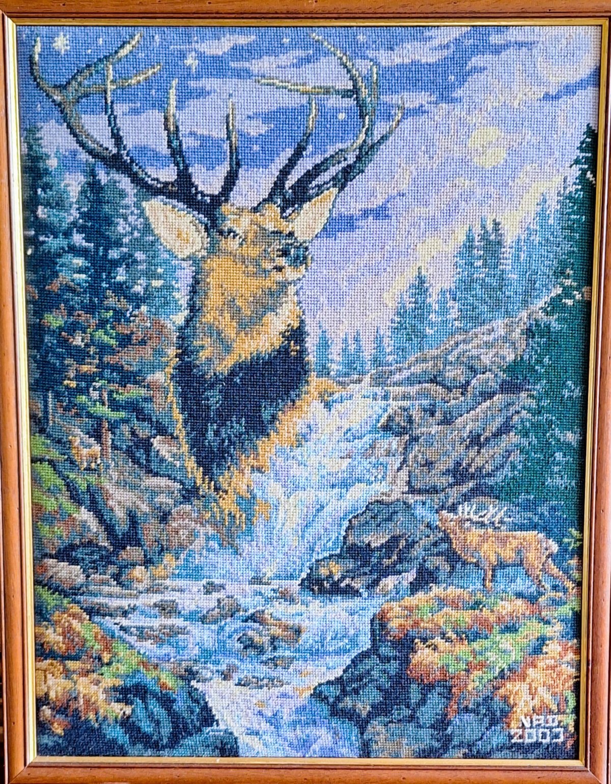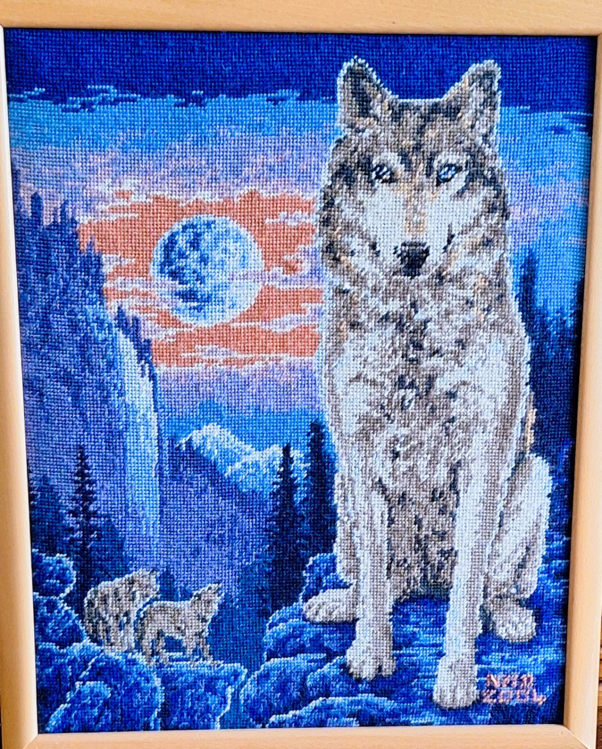 Mike à été fait avec ca peinture pour le fond et moi pour la broderie dessus. il n'était pas simplement un ami Gilbert était un grand peintre, tous ces encadrements ont été fait par lui, merci à toi qui es partit trop vite 1944-2020